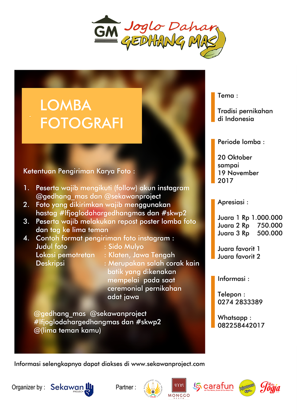 - Foto yang dikirimkan wajib menggunakan hastag #lfjoglodahargedhangmas dan #skwp2