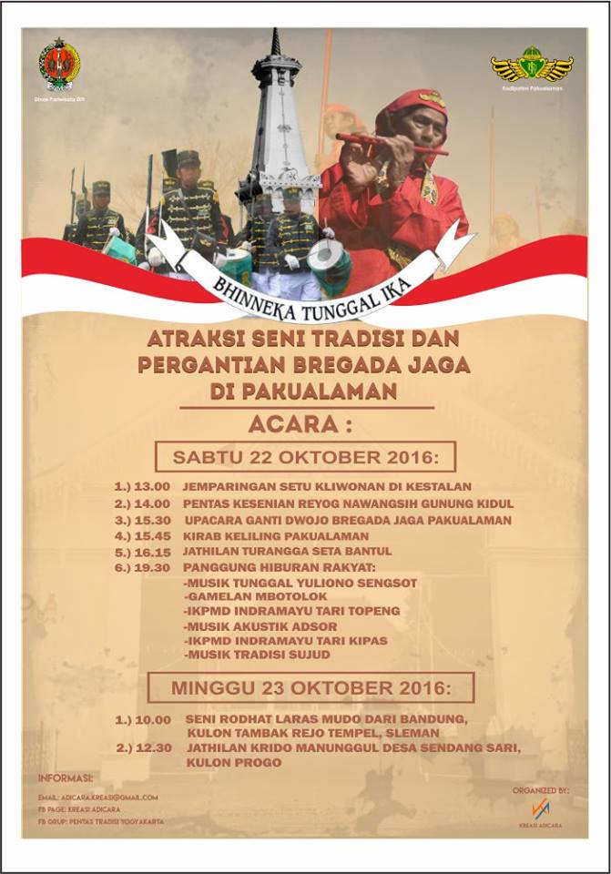 Atraksi Seni Tradisi Dan Pergantian Bregada Jaga Di Pakualaman Sabtu – Minggu, 22 – 23 Oktober 2016 @ Pura Pakualaman free