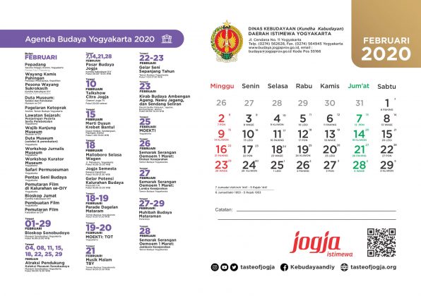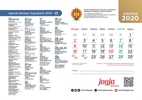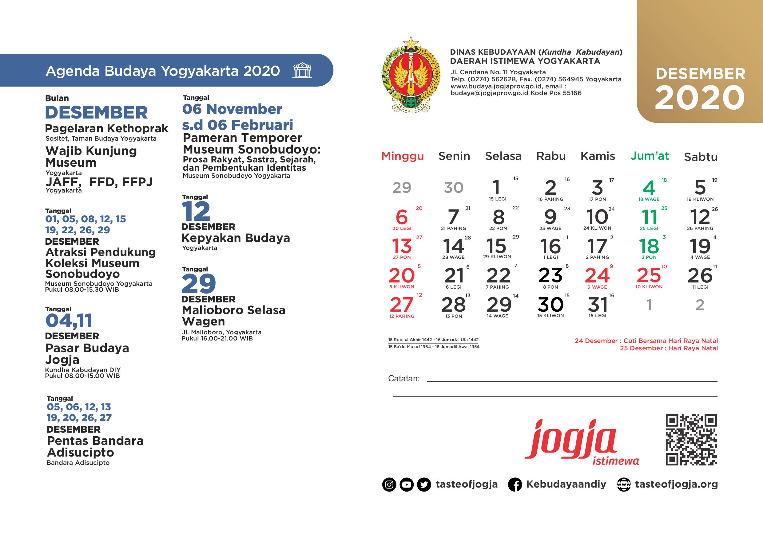Kalender Agenda Budaya DIY tahun 2020 14 January 2020 admin Seni Budaya 0 Kalender Agenda Budaya DIY tahun 2020 Berikut Kalender Agenda Budaya DIY tahun 2020 Kalender Agenda Budaya DIY tahun 2020