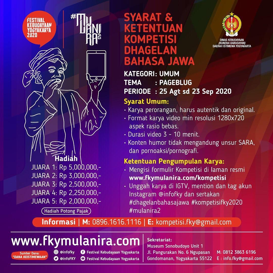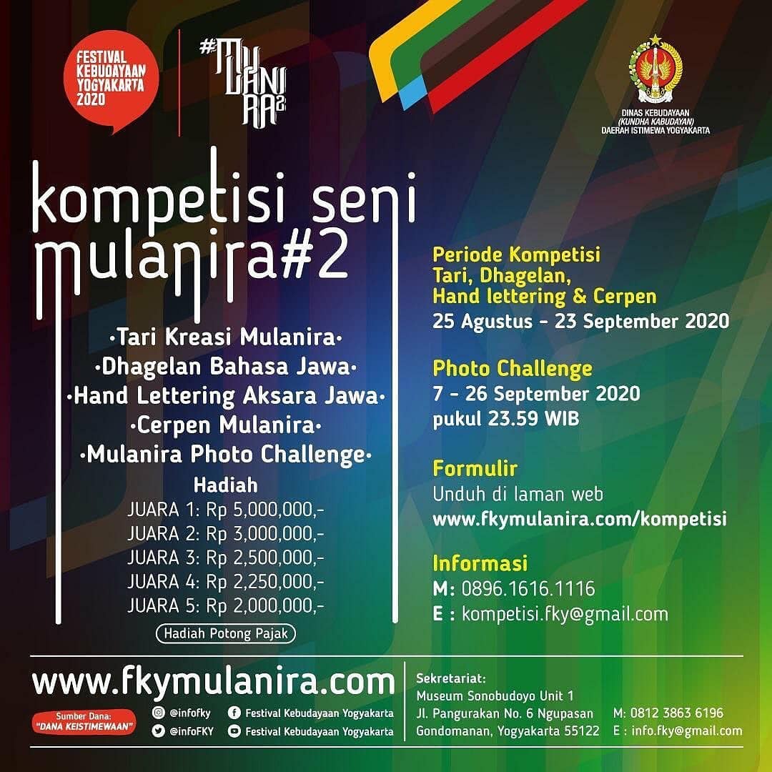 Kompetisi Mulanira, salah satu program Festival Kebudayaan Yogyakarta 2020 yang juga merupakan sebuah upaya untuk tetap menggandeng masyarakat dalam penyelenggaraannya.