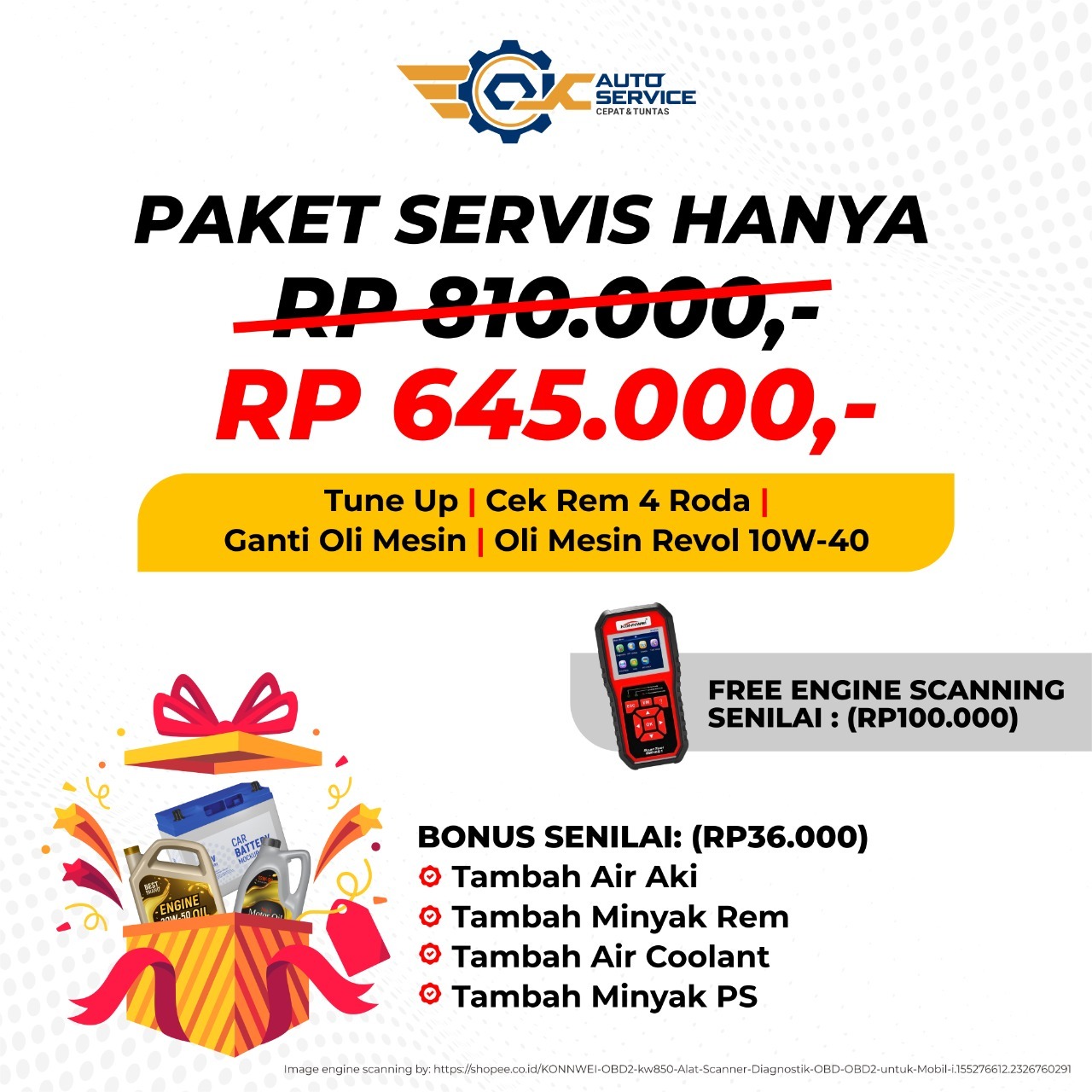 Sedangkan, untuk soal biaya servis mobil dari tiap paket di bengkel OJC Auto Service sebanding dengan layanan yang diberikan. Mengingat telah mempercayakan kepada para mekanik mahir dalam bidang servis mobil serta didukung alat penunjang canggih dan kompleks.