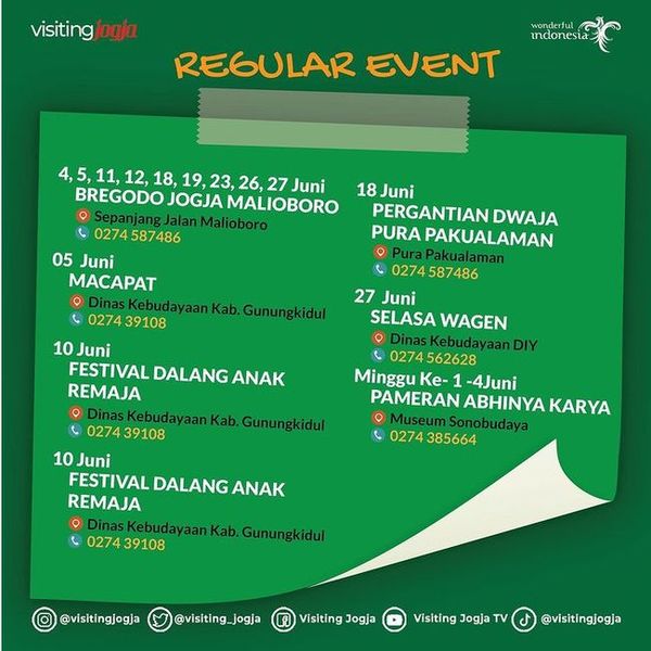 Calendar of Event Juni 2022 7 June 2022 admin Event, Seni Budaya 0 Calendar of Event Juni 2022 Serangkaian event yang akan hadir di Daerah Istimewa Yogyakarta. Yuk agendakan dan ramaikan!