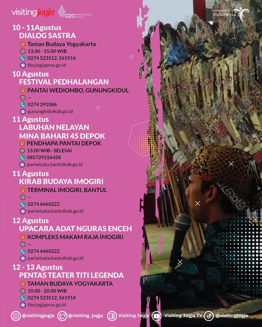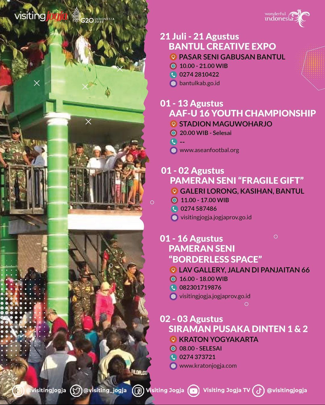 Rangkaian event budaya, wisata, musik dan event menarik lainnya yang akan digelar selama Bulan Agustus 2022 di Daerah Istimewa Yogyakarta