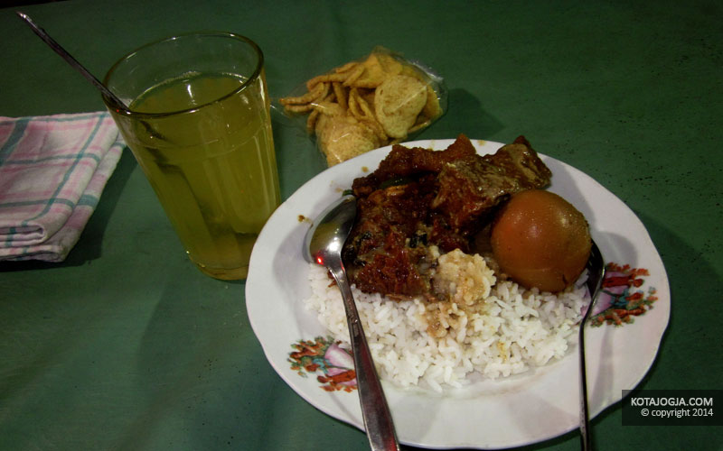 Beroperasi mulai pukul 21.00 WIB hingga dini hari warung ini kerap dipadati pembeli yang ingin menikamti gudeg basah khas racikan keluarga bu Pujo yang rasanya dominan gurih, tidak terlalu manis dengan sambal krecek yang pedas ditemani air jeruk atau teh manis hangat. Harga dipatok mulai Rp 8.000,00 untuk tiap porsinya tergantung lauk yang dipilih. Untuk lauk disediakan tempe, tahu, ayam kampung atau telur bebek. (Arisca Meir/kotajogja.com)